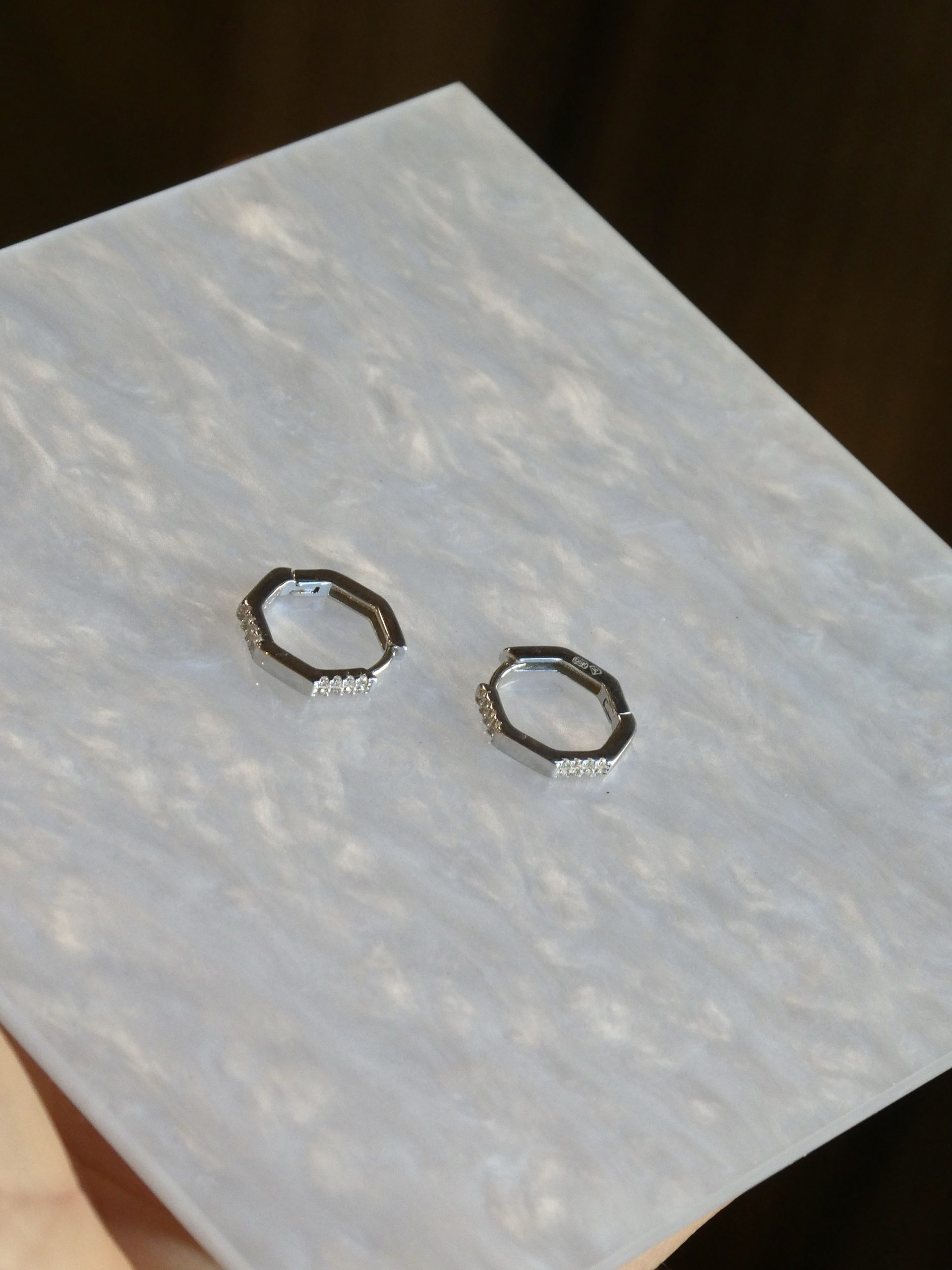 Ezüst karika fülbevaló cirkónia kövekkel. 925 finomságú ezüst.