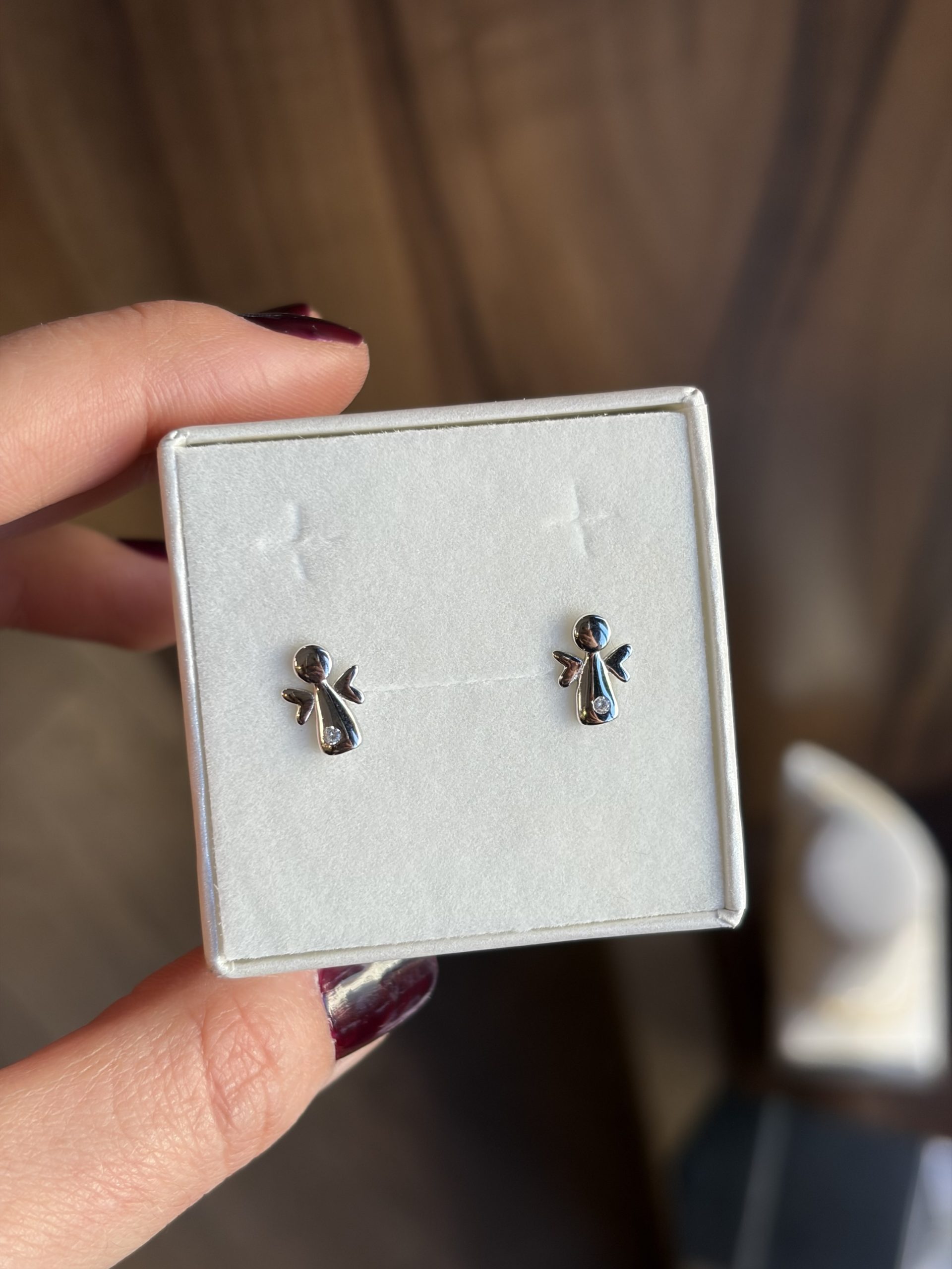 Ezüst angyalt ábrázoló fülbevaló – stekkeres. 925 finomságú ezüst.
