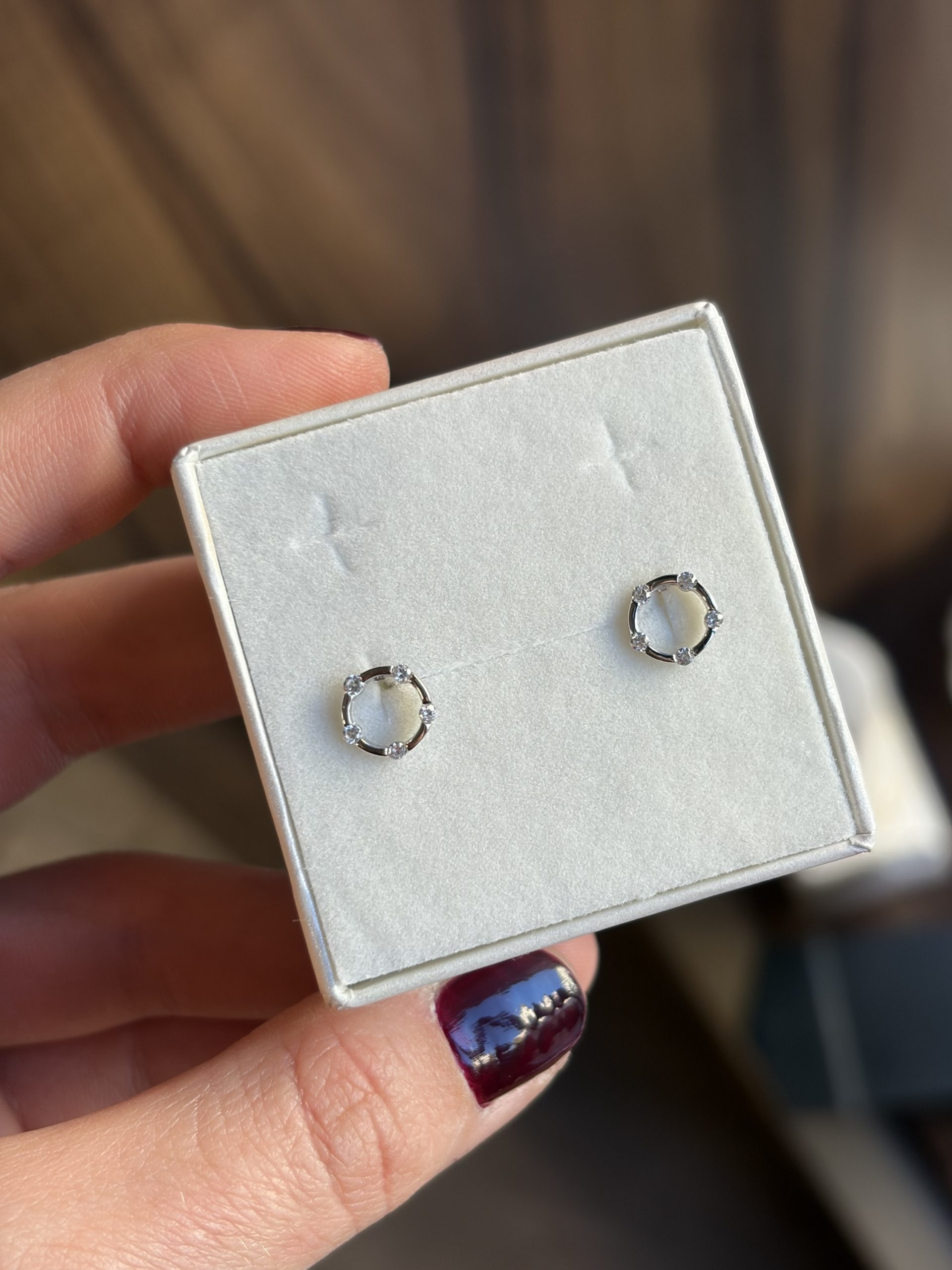 Ezüst kör alakú fülbevaló kövekkel – stekkeres. 925 finomságú ezüst.