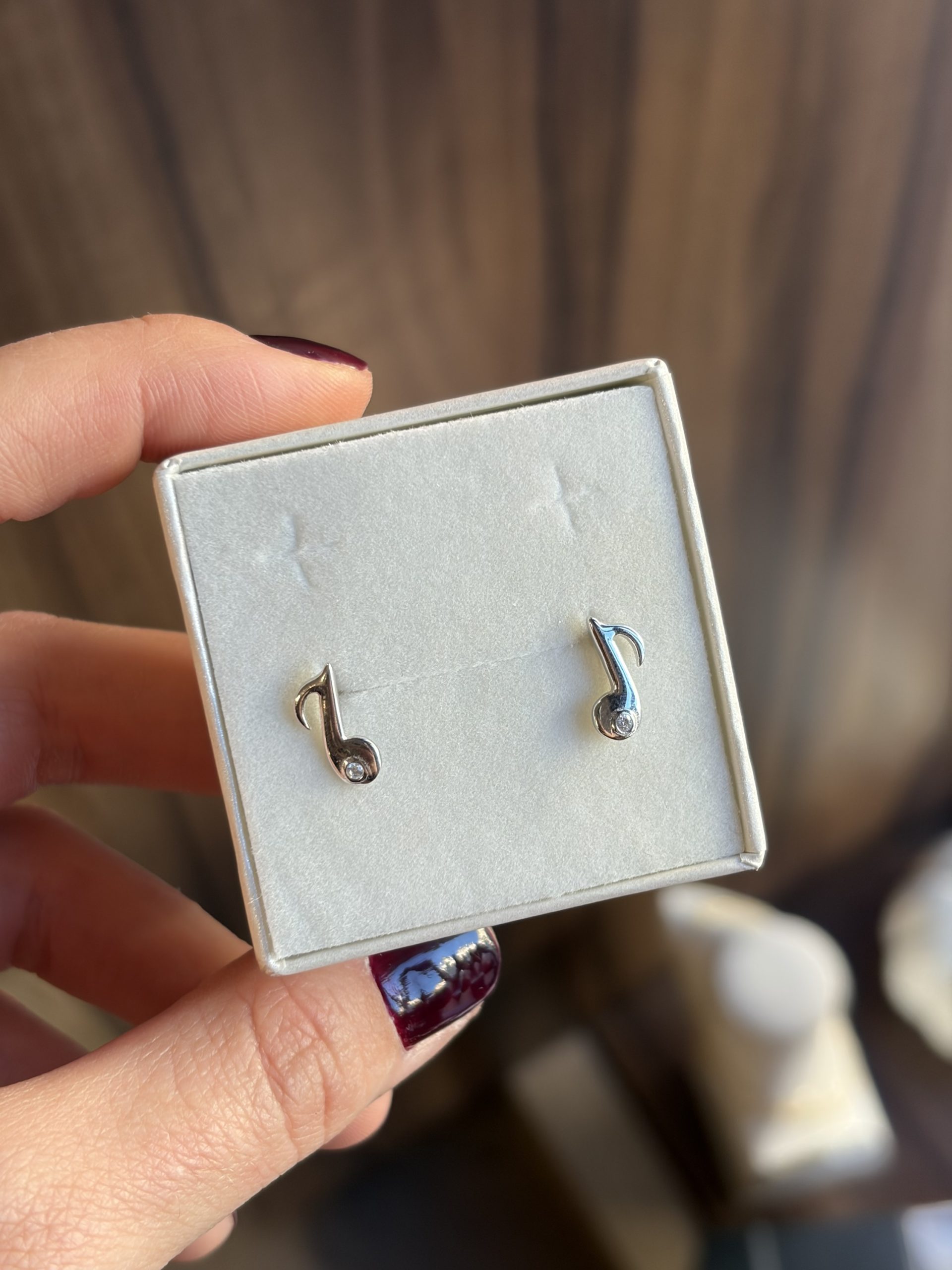 Ezüst hangjegy fülbevaló – stekkeres. 925 finomságú ezüst.