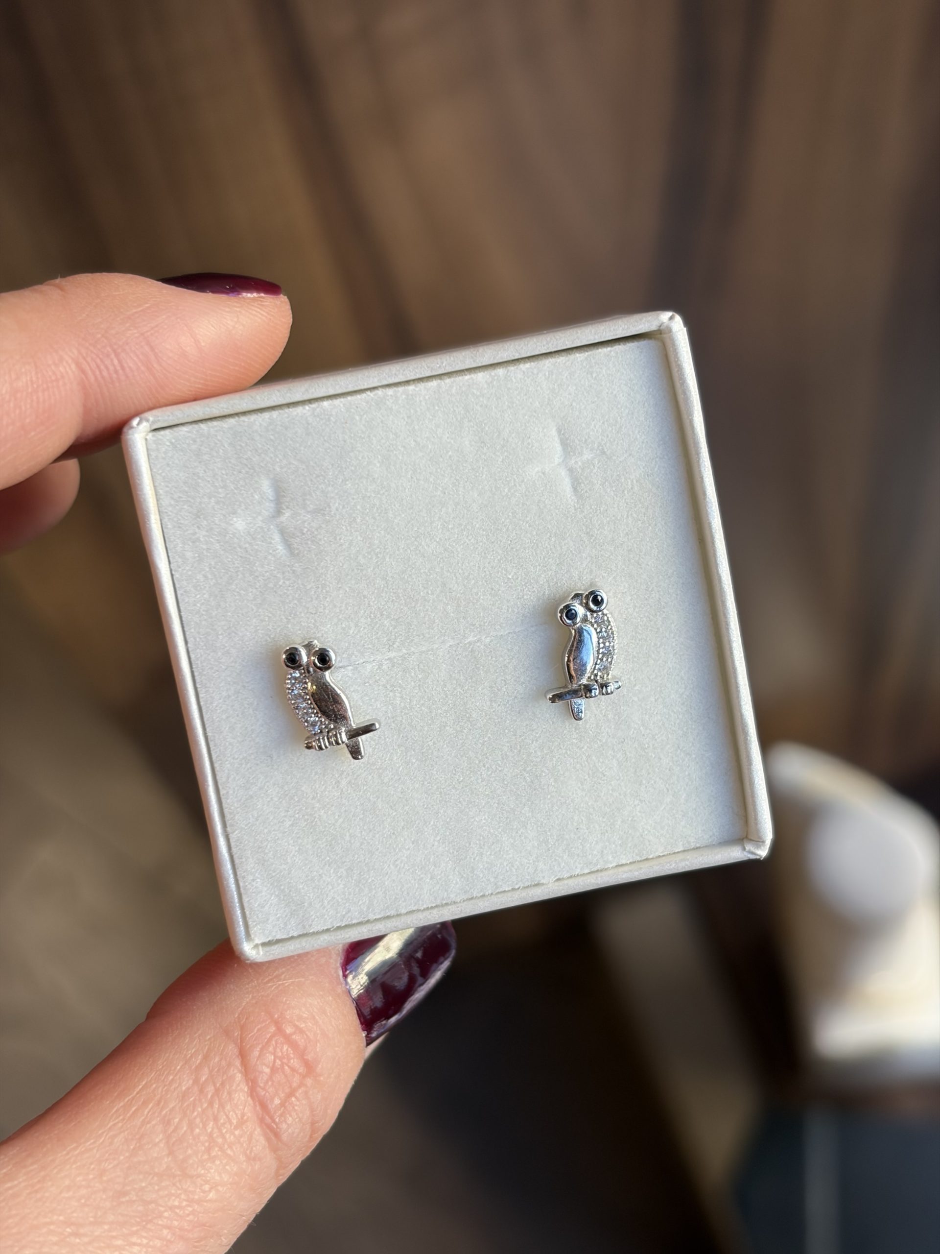 Ezüst bagoly fülbevaló – stekkeres. 925 finomságú ezüst.