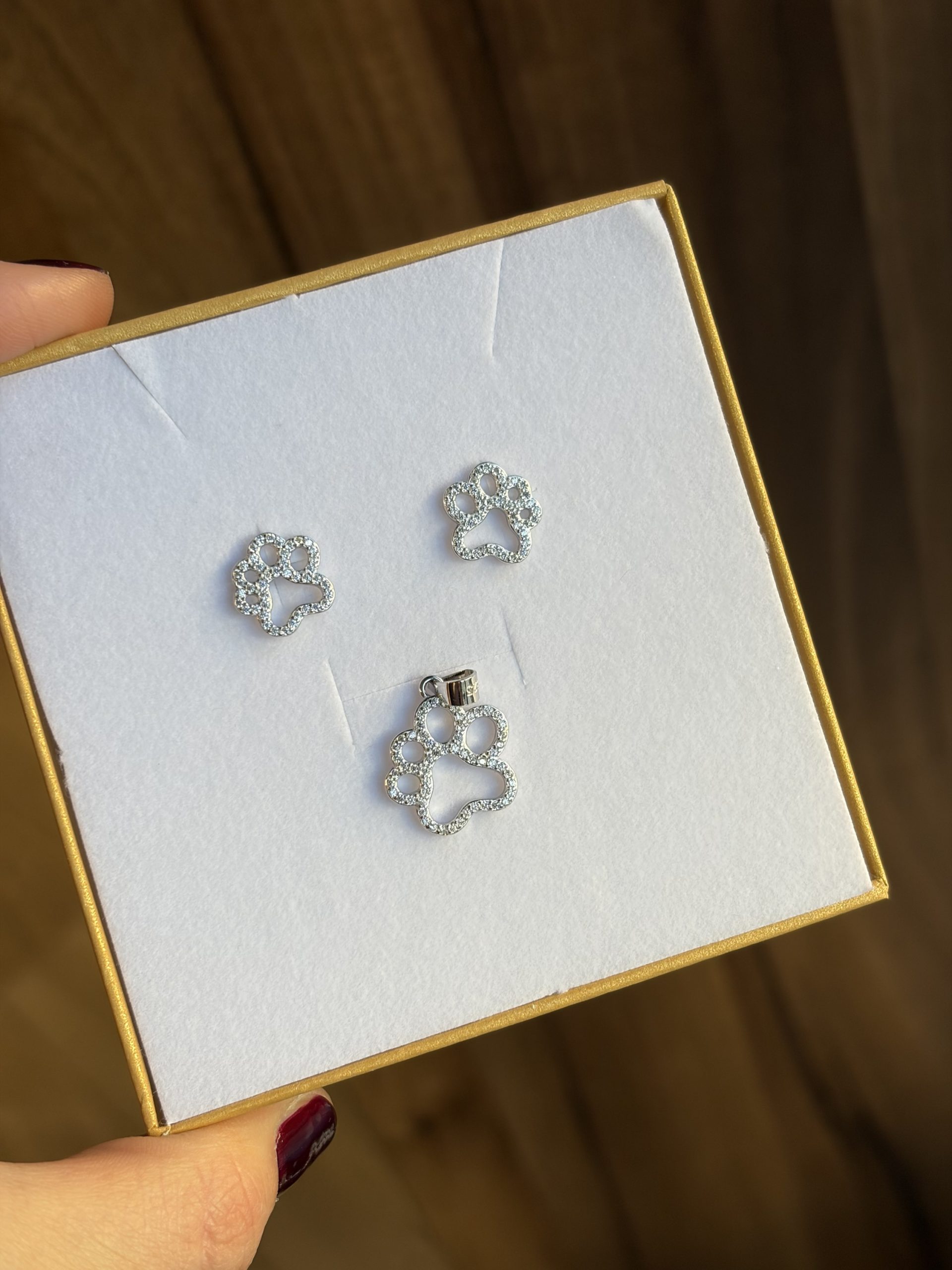 Ezüst kutya tappancs szett. Fülbevaló & medál. 925 finomságú ezüst.