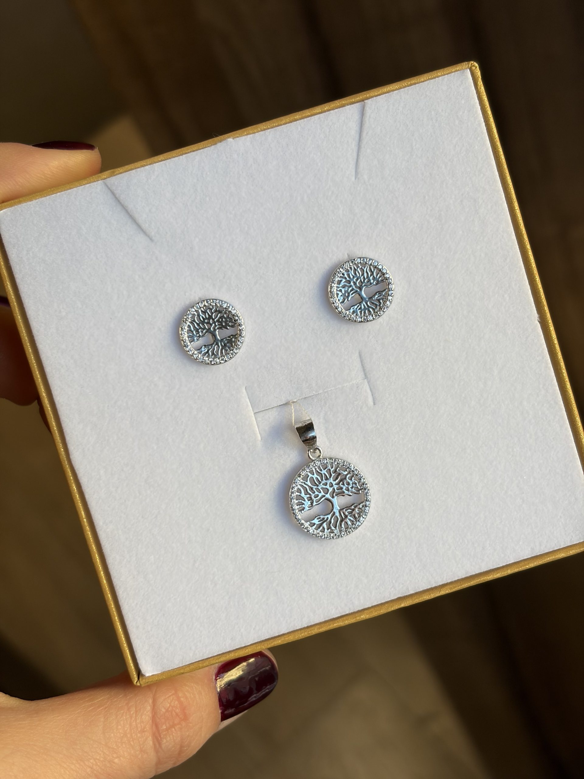 Ezüst életfa szett. Fülbevaló & medál. 925 finomságú ezüst.